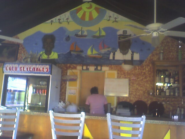 Arrival Pics, Treo phone with Low Resolution1 Pat waits for 2nd trip from Martha 2 David waits patiently with Dad 3 NE shore of Provo outside Restaurant 4 Sand and sea weed closeup NE Provo shoreline. White and fine textured sand. 5 Looking off balcony over viewing Atlantic Ocean NE Provo shoreline 6 Christine & Martha 7 Front counter of the little island restaurant. 8 Martha Harris, Administrator of PCS hosts us, pictured here with Christine. 9 David gets order similar to Joseph; Dad's portions so big he shared with Christine, and both Boys and was still stuffed. Big portions, but the cost was $15 and $20 each meal! We are VERY GRATEFUL FOR THIS GENEROUS HOSPITALITY FROM MARTHA HARRIS! 10 Joseph Shrimping into some Island brand French Fries-- Haitians from the Islands do speak French! Jan 14 Photos with Low Resolution Laptop Camera (14ea pictures)1 2 3 4 5 6 7 8 9 10 11 12 13 14 1a The Island Pictures